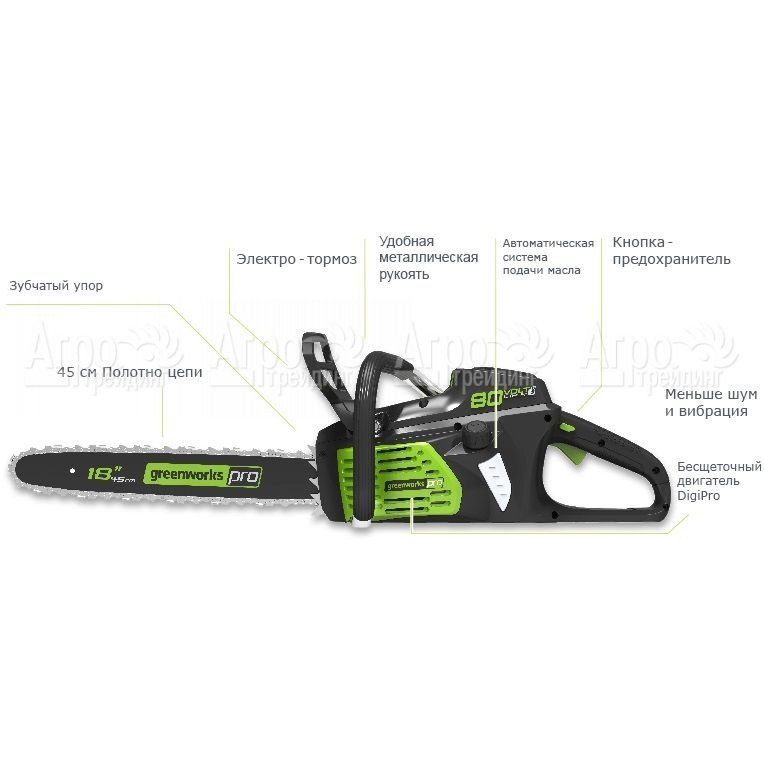 Аккумуляторная пила GreenWorks GD80CS50 80V-18