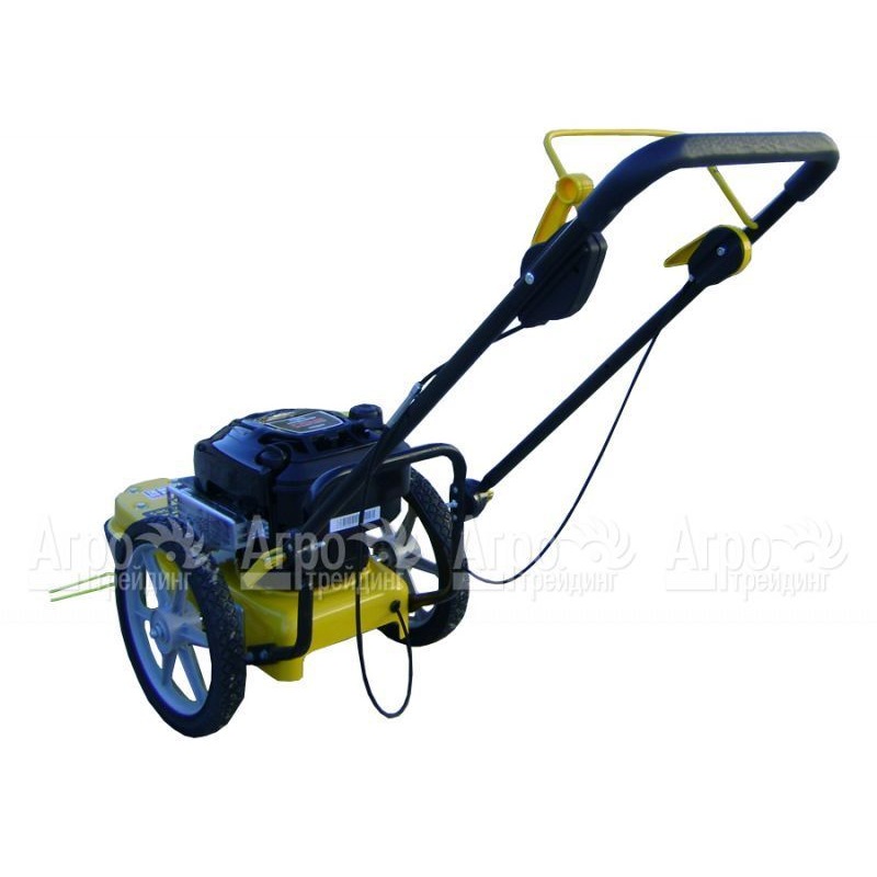 Характеристики товара: Бензиновая мотокоса на колесах (колесный триммер) SunGarden Tornado TM 566Подробное описание товараПростой в использовании и маневренный колесный триммер SunGarden Tornado TM 566 может использоваться в качестве газонокосилки на рельефных участках. Большие колеса, оснащенные шарикоподшипниками, способствуют отличной проходимости и доступности к затрудненным местам, позволяют обойти препятствия ( скамейку, кусты, камни). Четырехтактный мощный двигатель обеспечивает эффективную продуктивность на средних участках, экономичен в потреблении топлива и соответствует экологическим нормам по выбросам. Режущим механизмом бензиновой мотокосы на колесах SunGarden ToRnado TM 565 служит толстая леска, без усилия справляющаяся с резкой высокой травы с толстыми и огрубевшими стеблями. Включать или выключать головку триммера позволяет рычаг, расположенный на рукоятке, в легкой доступности руки. Материал корпуса устойчив к коррозийному и механическому воздействию. Рукоятка складная, что практично при хранении и удобно при транспортировке в автомобиле. Установка пильного диска ( приобретается отдельно) позволяет использовать триммер для уничтожения молодой поросли деревьев и кустарников.