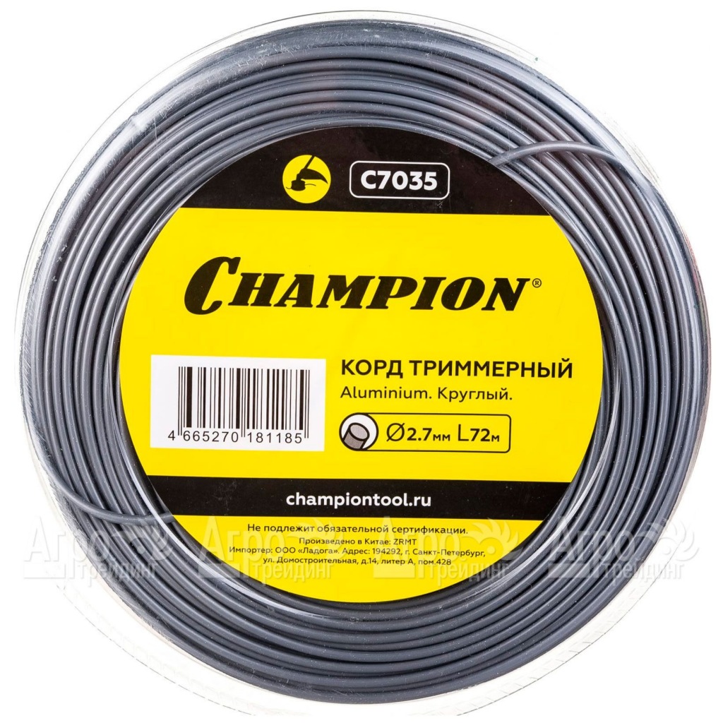 Корд триммерный Champion Aluminium 2.7мм, 72м (круглый)+нож