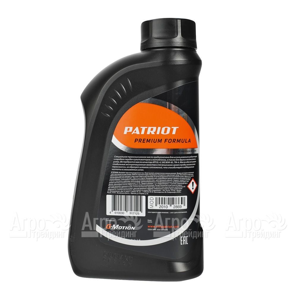 Характеристики товара: Масло трансмиссионное Patriot G-Motion Gear 80W-85 1 л