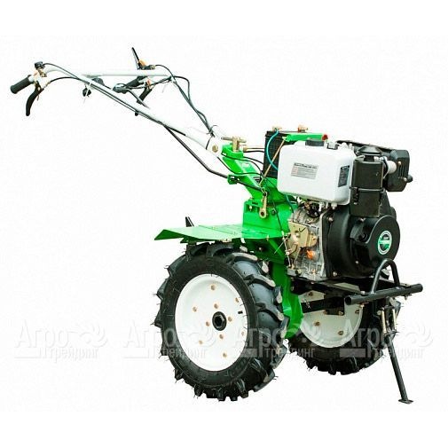 Характеристики товара: Мотоблок Aurora Space-Yard 1350DПодробное описание товараМотоблок Aurora Space-Yard 1350D широко используется для обработки почв на больших территориях. Возможность легкого запуска при суровых погодных условиях достигается благодаря наличию электростартера. За счет использования качественного чугуна при изготовлении редуктора достигается его повышенная прочность и надежная защита от попадания камней. В свою очередь, с целью расширения функционала устройства и подсоединения к нему вспомогательного оборудования применяется усиленная сцепка. Также к числу достоинств модели относится наличие шестигранных осей для прочной фиксации фрез и колес. Еще одной особенностью мотоблока считается применение мощного дизельного двигателя, отличающегося продолжительным сроком службы, экономичностью и надежностью. Внушительный топливный бак позволяет работать длительное время без дополнительной заправки. Немаловажным преимуществом является возможность обработки сложных грунтов, что обеспечивается за счет усиленных почвофрез. |