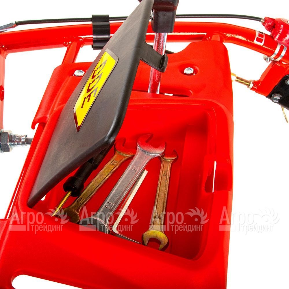 Характеристики товара: Мотоблок DDE Алеша ППодробное описание товараМотоблок DDE Алеша П предназначен для использования в саду, на даче, огороде, в небольшом фермерском хозяйстве. С помощью сменного оборудования, устанавливаемого на агрегате, обрабатывают землю, убирают снег, организуют кошение травы и перевозку грузов. К преимуществам данной модели относят наличие мощного и надёжного двигателя внутреннего сгорания, потребляющего недорогой неэтилированный бензин АИ-92, удобную сцепку с тремя пальцами, позволяющую работать с любым навесным оборудованием, и простую систему управления всеми механизмами. Среди технических особенностей бензинового мотоблока DDE Алеша П можно выделить расширенный функционал, сравнимый с более тяжёлыми аналогами, чугунную трансмиссию повышенной надёжности с сапуном, широкие колёса и защищённые от попадания грязи и пыли тросы. Двигатель Хонда, используемый в агрегате, оборудован датчиком уровня масла и фильтром с масляной ванной. Руль устройства регулируемый. Широкие крылья над колёсами защищают оператора от разлетающейся земли. При смене навесного оборудования удобно пользоваться сервисной ножкой. |
