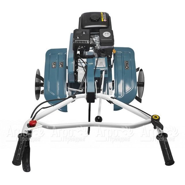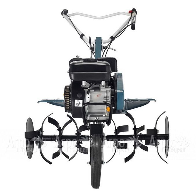 Характеристики товара: Мотоблок Hyundai T 1200Подробное описание товараМотоблок Hyundai T 1200 - надежная и производительная техника для работы на полях и в саду, которая обладает и мощностью, и отличной проходимостью и удобна в эксплуатации. Высокотехнологичный двигательHyundai IC 210 с увеличенным моторным ресурсом, обеспечивает надежность эксплуатации, обладает пониженной токсичностью и экономным расходом топлива. Трансмиссия с 2 передними и 1 реверсной скоростью позволяет передвигаться на оптимальной скорости и дает возможность для совершения маневра - поворота или выезда при зарывании в легком грунте. Эргономичные рукоятки, с возможностью регулирования в нескольких положениях для максимально комфортного управления машиной, поднимаются вверх и разворачиваются вправо/влево, что позволяет следовать сбоку от мотоблока Hyundai T 1200 и не утаптывать землю. Фрезы имеют саблевидную форму, загнутых под оптимальным углом, что обеспечивает качество вспашки грунта. Боковые диски служат для защиты растений и формирования ровных кромок на обрабатываемой площади. Подъемное транспортировочное колесо удобно для доставки техники в нужное место. Ширина полосы культивации зависит от количества используемых секций фрезы и может достигать до 90 см, при помощи сошника регулируют заглубление в почву.