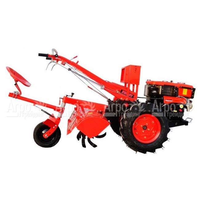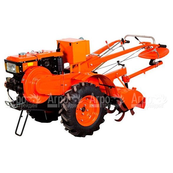 Характеристики товара: Мотоблок Profi PR1040EПодробное описание товараМотоблок Profi PR1040E используется для обработки больших территорий почвы. В комплектацию агрегата входит плуг, почвофреза и удобное сиденье оператора. Данная модель оборудована двигателем мощностью 10 л.с., который имеет шумопоглощающий кожух. Благодаря системе водяного охлаждения мотор при продолжительной эксплуатации не перегревается. Объем дизельного бака равен 9 л., что позволяет осуществлять работу длительное время без дополнительной заправки. В зависимости от плотности обрабатываемой почвы можно использовать 6 скоростей для движения вперед и 2 – для движения назад. Эффективная вспашка целины обеспечивается благодаря наличию 18 острых режущих частей. За один проход мотоблок Profi PR1040E позволяет обработать почву шириной 100 см и глубиной 20 см. Большие колеса с рифленым протектором шин обеспечивают надежное сцепление с землей.