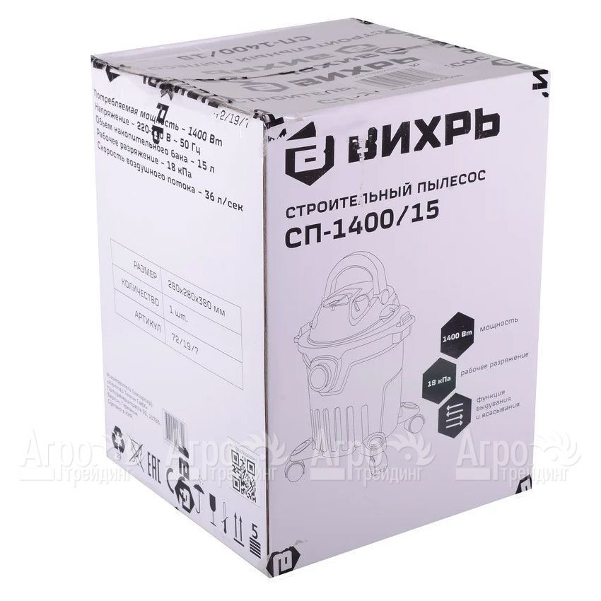 Строительный пылесос Вихрь СП-1400/15